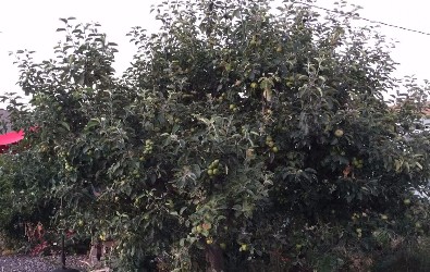 Our grand heirloom apple tree — some 40 years old, with at least 5 apple varieties grafted to it — is in full fruit…