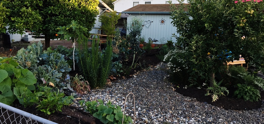 We moved in on September 1st, 2014 and adopted the property’s three mature fruit trees, a few feral bushes and random greenery — and a whole lot of little rocks. 🙂 From that, we built a thriving food forest and homestead project that brought us together with so many wonderful neighbors and hopefully provided a model of food fertility and self-reliance.